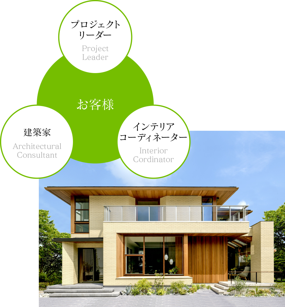 それぞれの専門分野で培った豊富な経験と卓越した知識を結集させ、お客様が理想とする一邸を、ともにデザインし、世界でひとつだけの最上プランをご提案いたします。