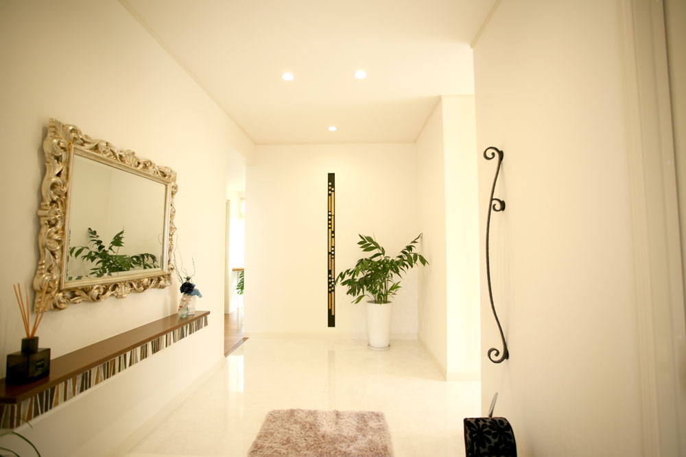 フィルコートのフレンチスタイルは、高級感・重厚感の中にもフェミニンでやわらかなテイストが感じられ、私好みでした。設計士の林さんは話しやすく面白い方で、要望を伝えやすかったです。もっともこだわったのはキッチンです。T形のレイアウトはオリジナルのオーダーメイドで、とても気に入っています。インテリアは大須賀さんのセンスが光るコーディネートで素敵に仕上げていただきました。色使いや組み合わせのノウハウ、観葉植物の選び方など、アドバイスもしていただき、おかげで家の中全体がお気に入り空間です。そして何といっても、全館空調は快適の一言。家族全員、健やかに過ごしています。