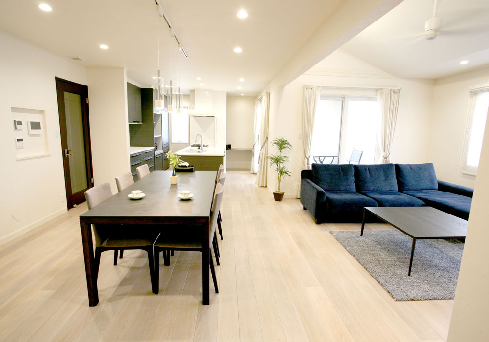 設計の清水さんは、2階のリビングや使いやすい家事動線など、とても有益なご提案をしてくださり、「清水さんの言うことは間違いない」と全幅の信頼でお任せすることができました。清水さんはその思いに応え、親身に対応してくださいました。特に、バスルームから洗面室、ランドリー室、ファミリークロ―ゼットまで一直線につながった動線はとても使いやすく、洗濯から収納まで1カ所で完結するので助かっています。