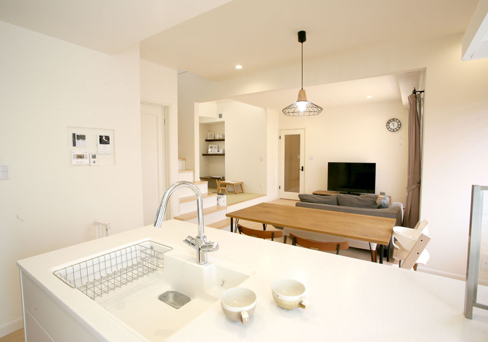 岩崎さんは、土地探しにも付き合ってくださいました。本当に親身にサポートしてくださり、感謝しています。設計の大塚さんも、リビングを見渡せるキッチンやリビング階段、広い玄関など、私たちの希望をすべて形にしてくださいました。その上で、プロとしてのアドバイスもしてくださったので、納得して決めていくことができました。