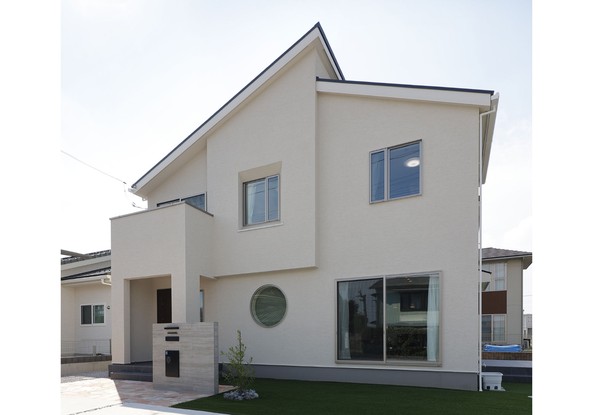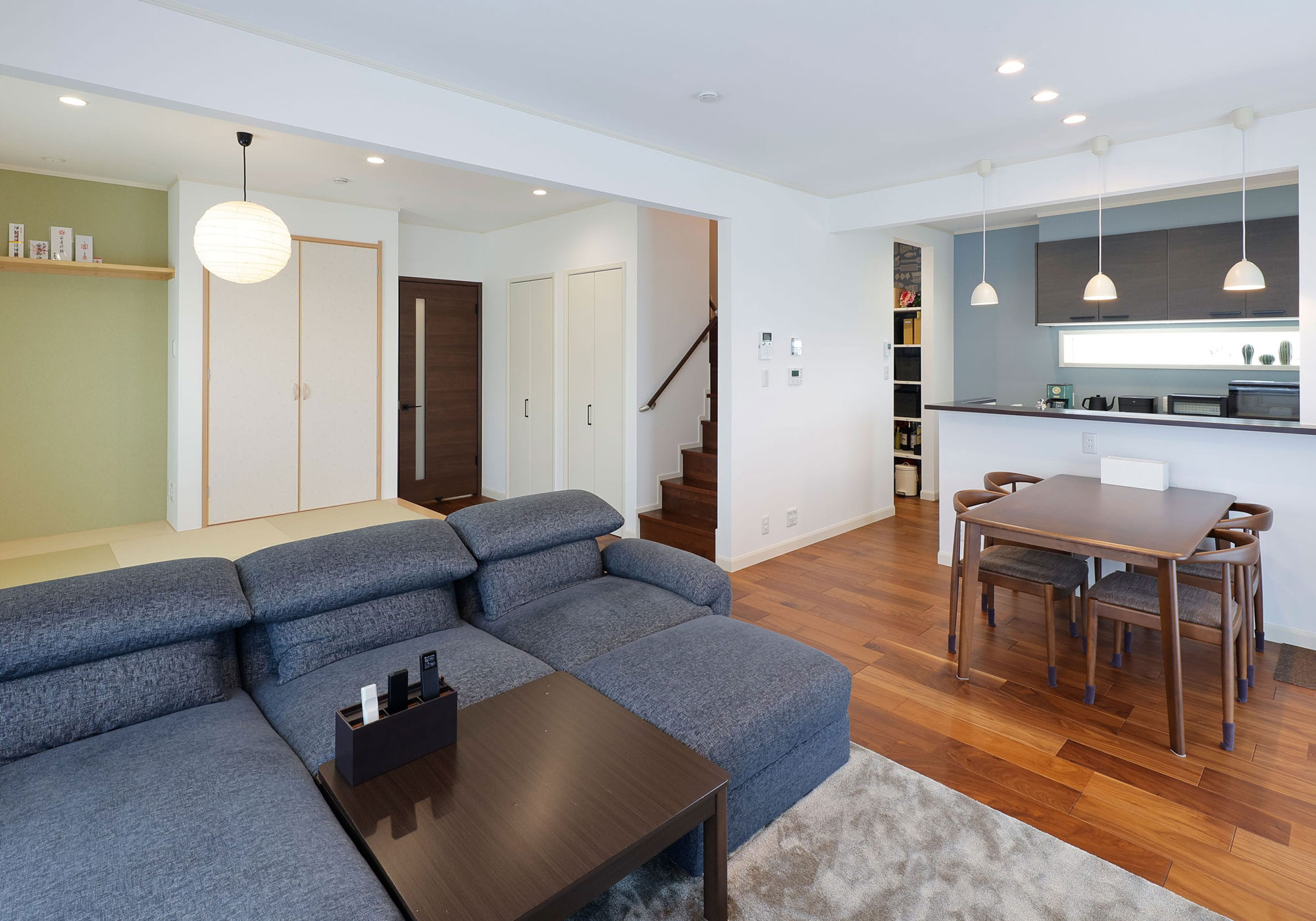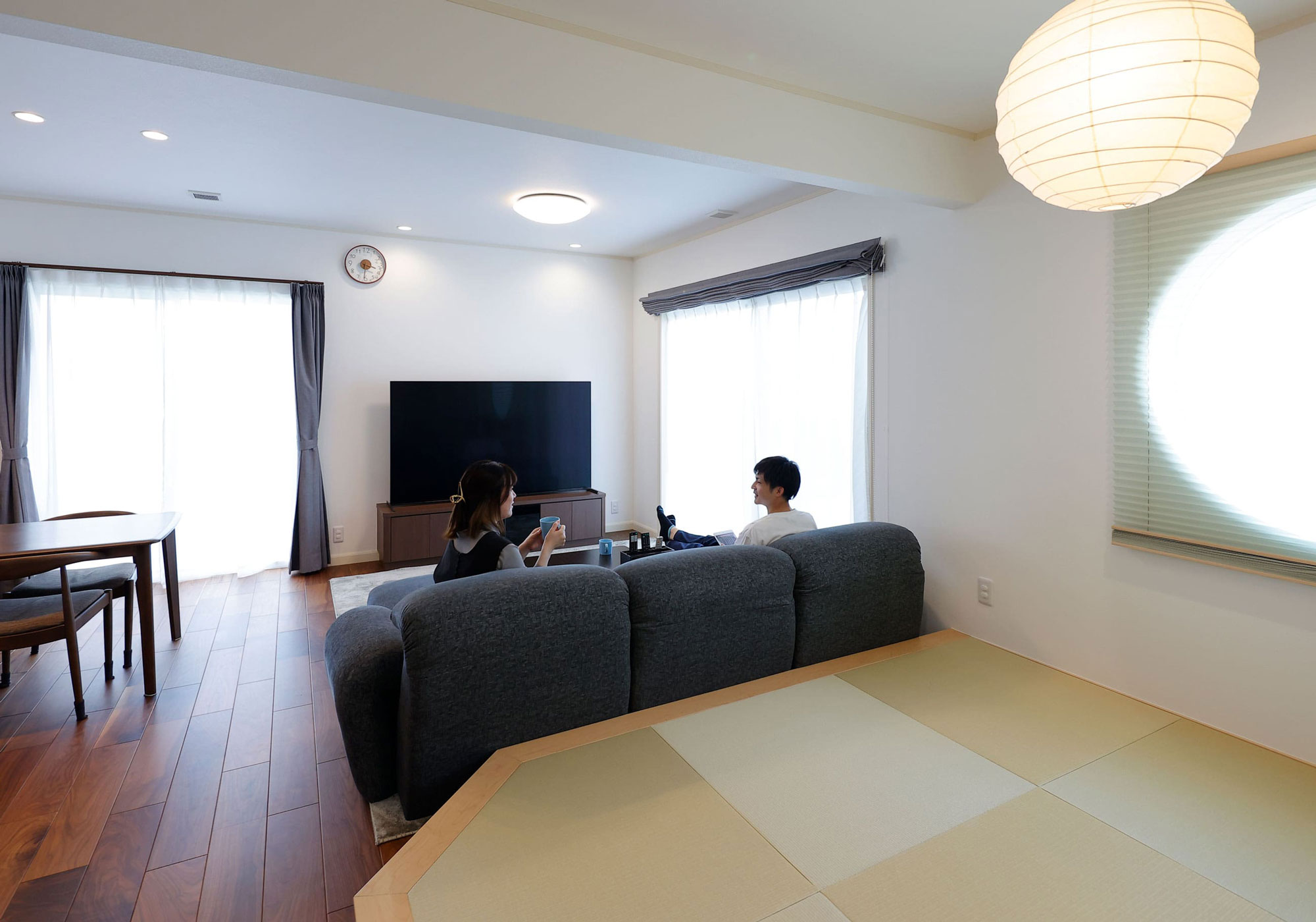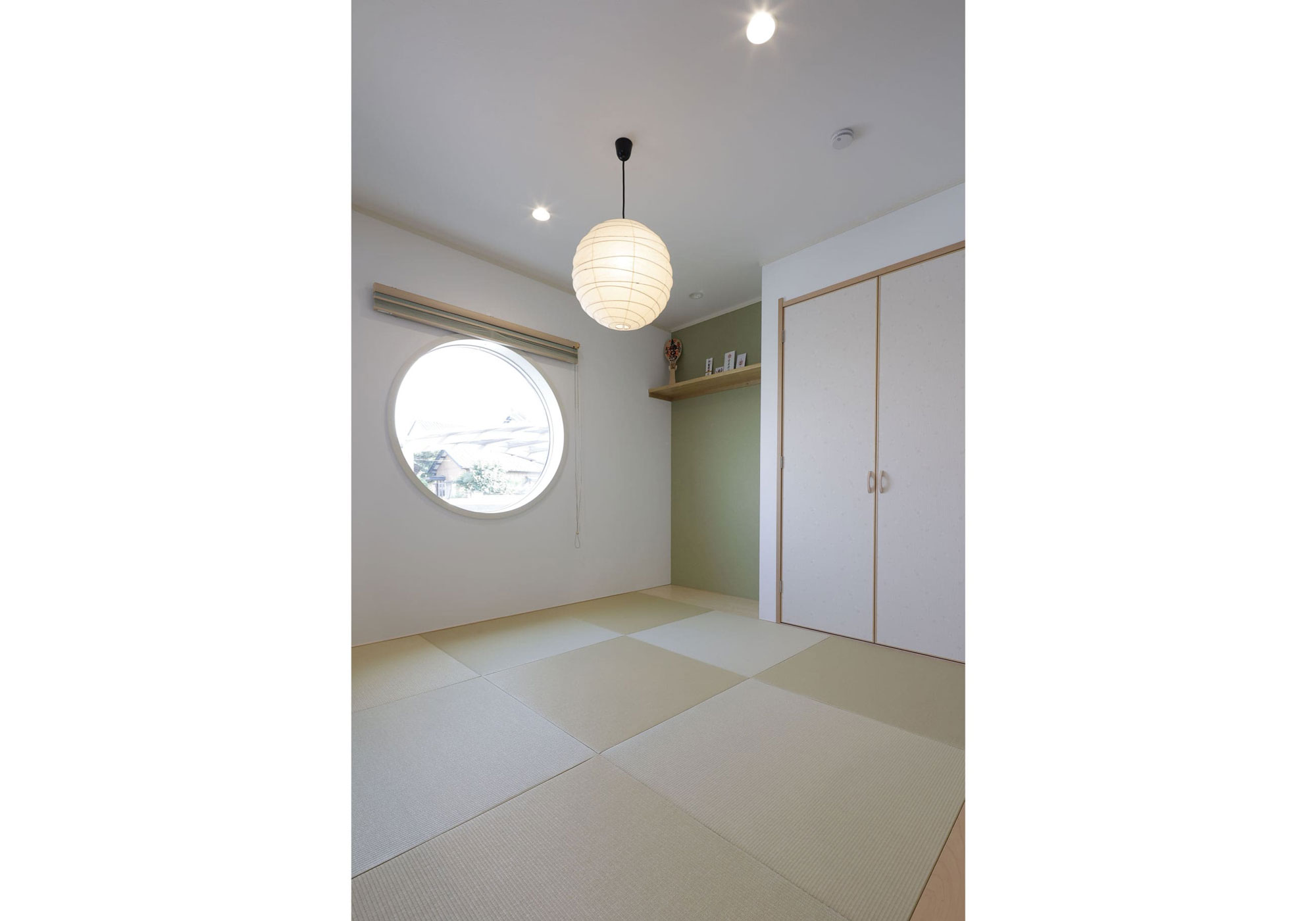 リビングが想像以上に広くて嬉しかったです。リビングには畳がある和のエリアをつくったのですが、ここは取り入れてやはり正解だったと感じました。私たちは2人とも和式の家で育ったので、畳があると落ち着くんです。これから子供も生まれてくるので、子育ての時にはさらに重宝しそうです。それと、「和のエリアをつくるなら丸い窓が欲しい」と思っていたのですが、インテリアコーディネーターの新井さんには素敵な丸い窓とそれにマッチしたブラインドなどを提案していただきました。その他の場所でもコーディネーターさんに沢山お世話になりました。常にこちらの要望にマッチした提案をしていただけるので、すんなりと決定することができます。さすがプロですね。念願だった和室の丸い窓は、我が家ほどの大きいサイズは三井さんにしかないそうで、外から見ても存在感があり満足しています。