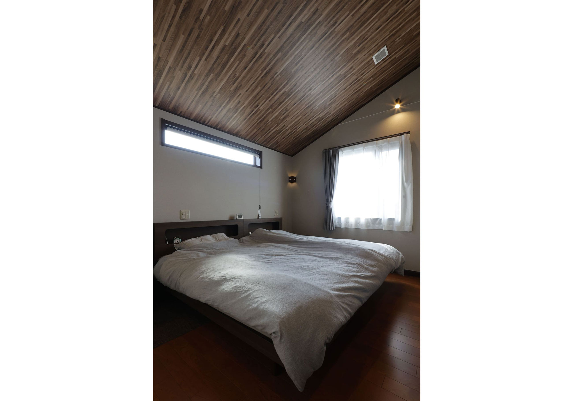 二階の天井を木目にしたり、寝室の天井を斜めにしたりと内装には様々こだわりましたが、いざ住んでみて実感したのは全館空調が快適だということです。全館なので部屋と廊下を行き来するときも寒暖差が無く、常にストレスフリーで過ごすことができます。今、第一子を妊娠中なのですが、この家が快適すぎて里帰り出産はしないつもりです(笑)。家にいる時間が心地よいと、心に余裕も生まれて家族との関係性もずっと良好でいられそうな気がします。肝心な電気代はどうなるか怖かったのですが、私たちが想像していたよりも高くなく、アパートに住んでいた時よりも少し多く電気代を払うだけでこの快適さが手に入るなら非常にコスパは良いと思います。