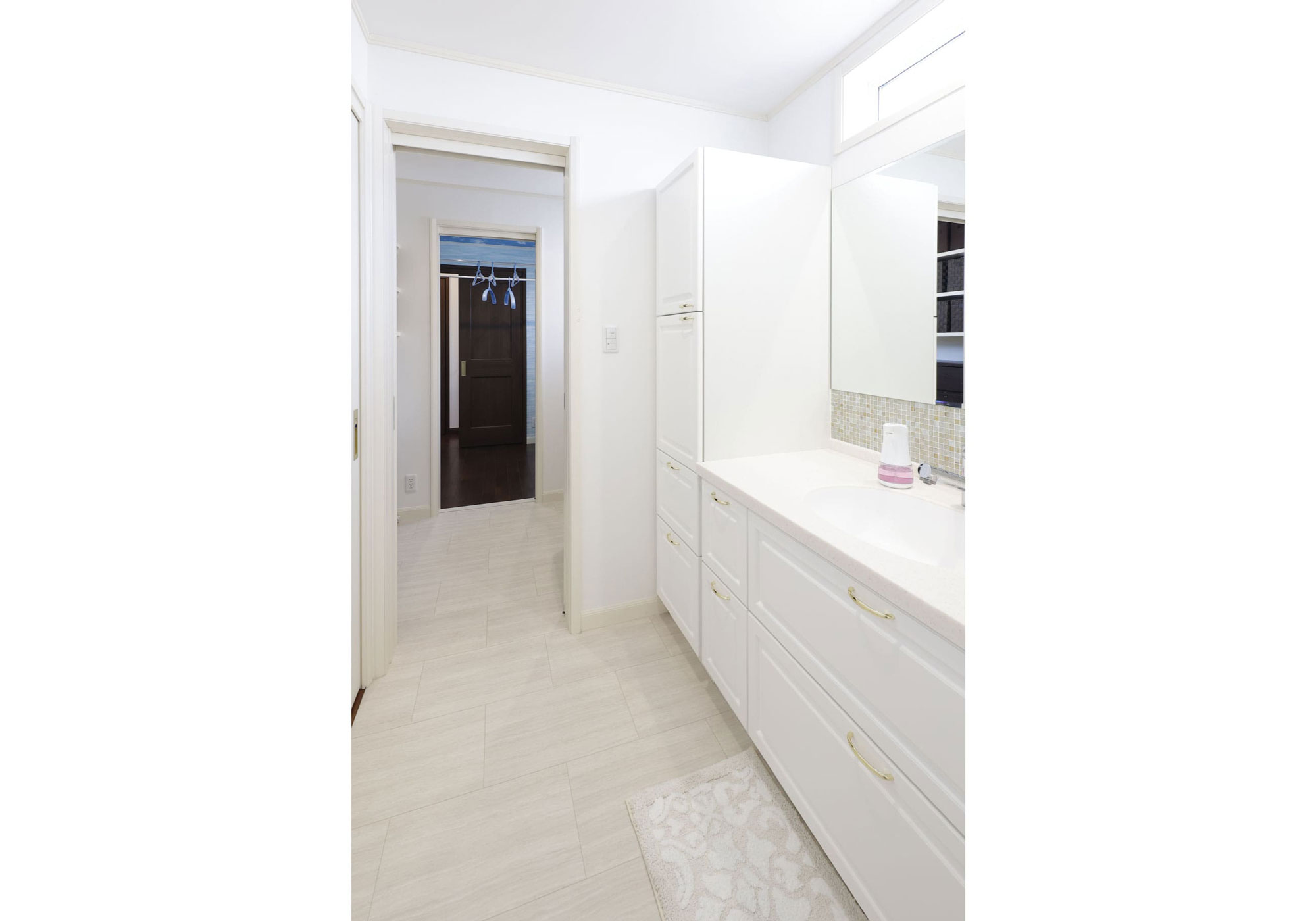 完成後の仕上がりは想像以上に良かったです。私たちは内装は三井ホームのインテリアコーディネーターさんにほとんどお任せしちゃってました。自分たちだけで決めてたら取り入れないような柄や色を提案していただき、ありがたかったです。特にランドリールームは壁紙がかわいくて一番自慢したい空間になりました。私の母に見せた時も「ランドリールーム素敵ね」って言ってもらえて嬉しかったです。