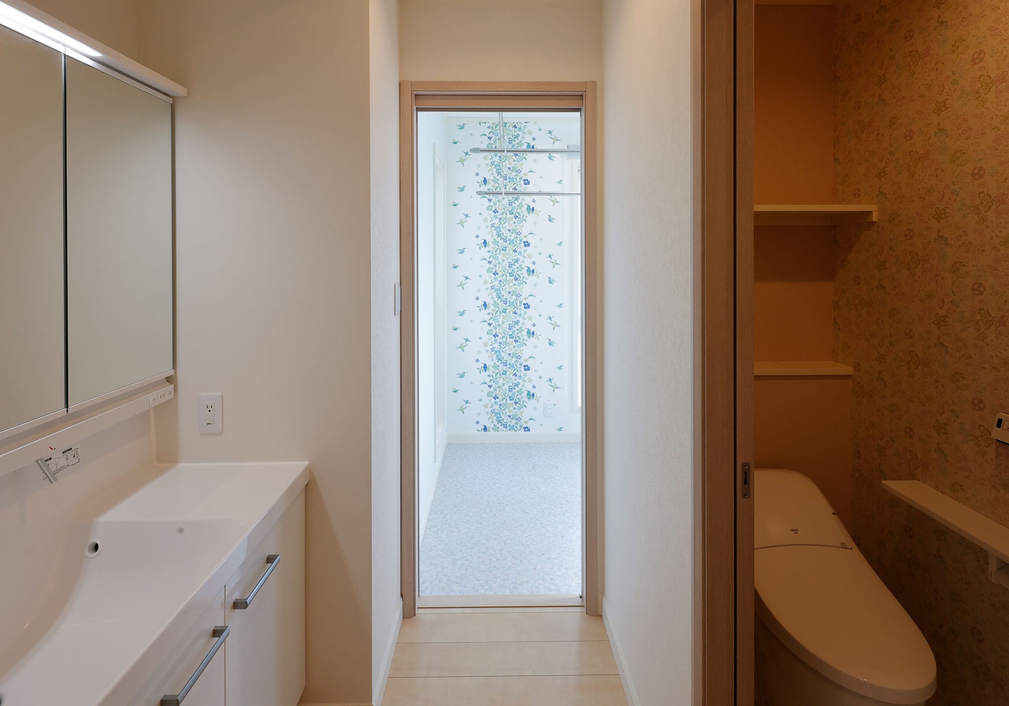 この辺りは砂ぼこりが多くて、外に洗濯物を干したくないという理由でサンルームを作ることにしたんです。ただ、2階にサンルームを設置する位置が難しくて頭を悩ませていたのですが、営業の方に親身になって相談に乗っていただきました。サンルームは重宝しているので、設置してよかったです。あとは、おもちゃは1階にだけ置いて、2階ではすぐにお風呂に入って寝ることができるような設計にしました。そのおかげで割とメリハリのある生活ができていると思うので、設計の段階で自分たちの生活スタイルに合わせて考えておいて良かったと思います。