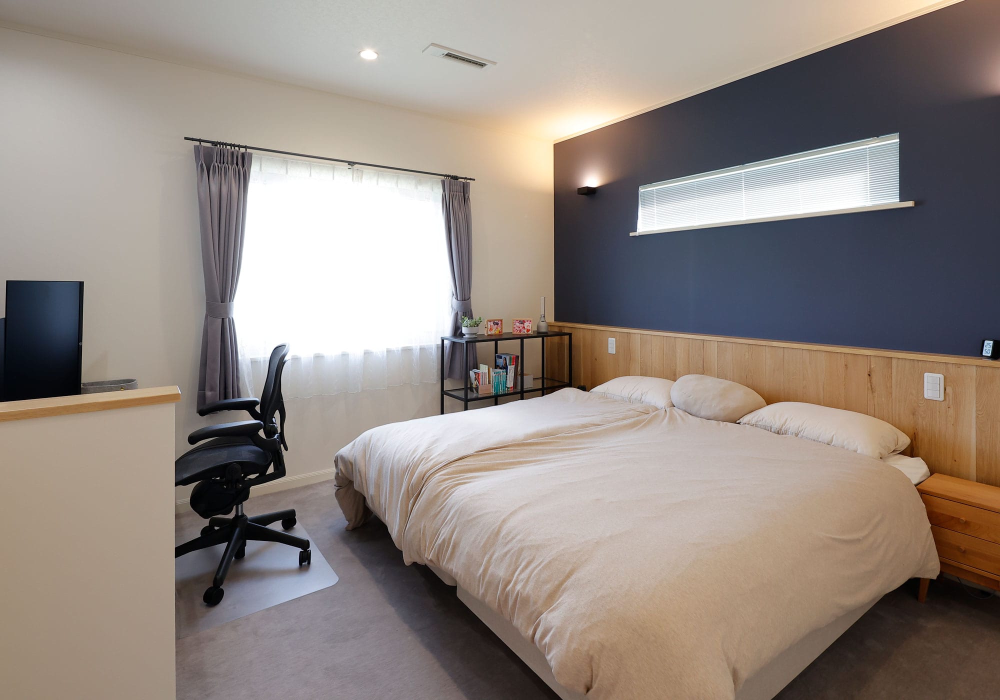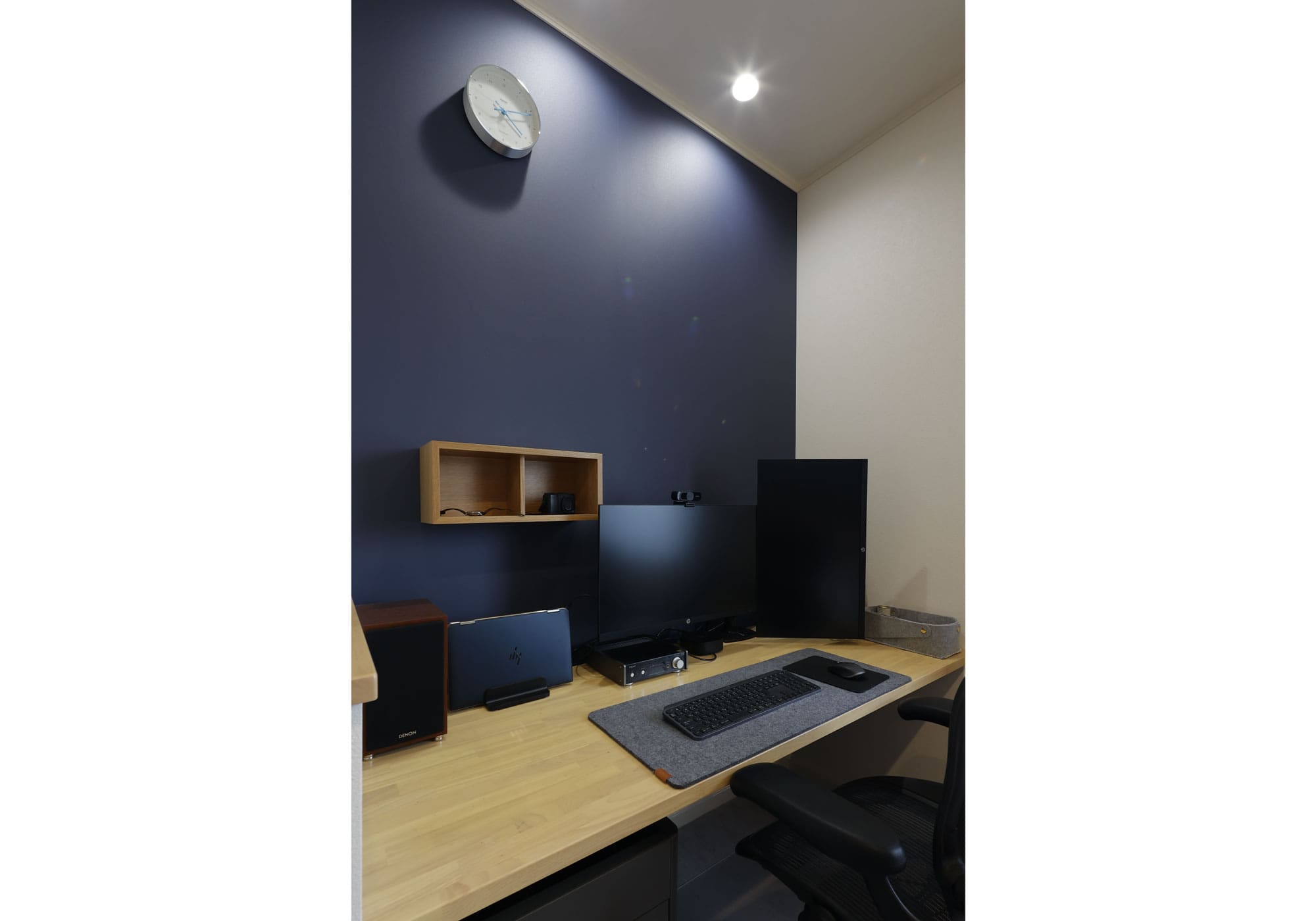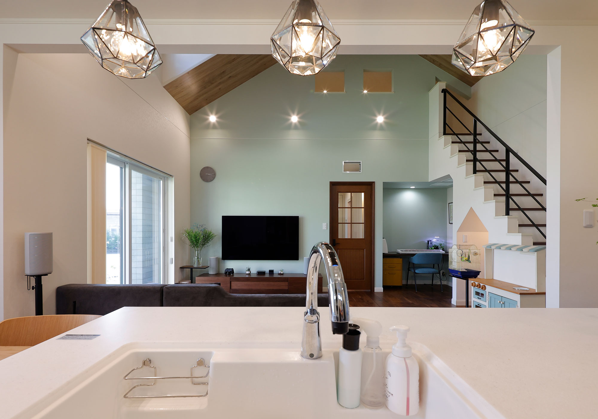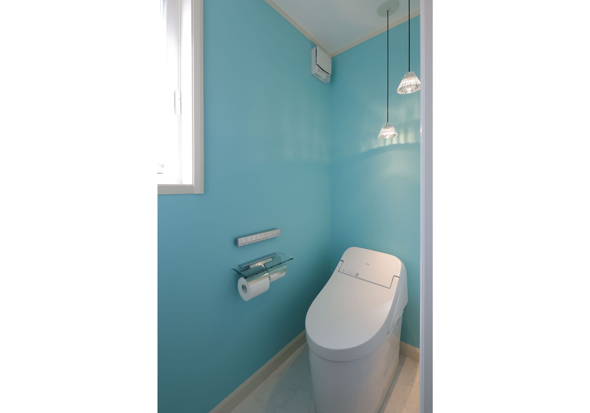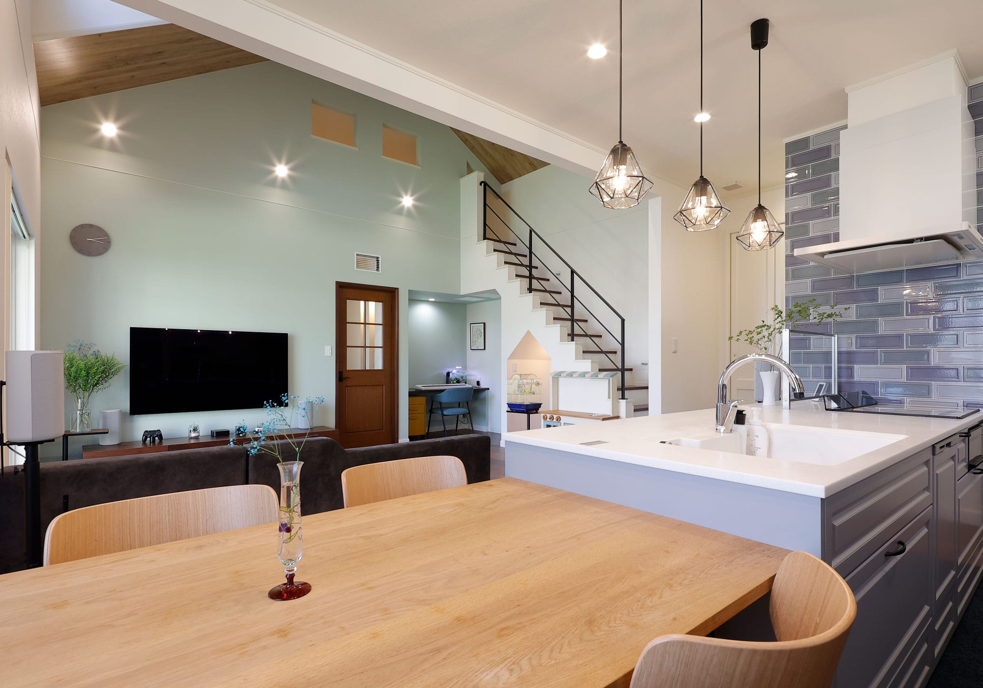 最初から立体的な模型を見せていただいたことで、家の外観から実際にそこに住むイメージまで膨らませることができました。内装は自分の趣味をふんだんに散りばめさせることができ、満足しています。特にアメリカンな感じが好きなことを汲み取っていただき、趣味の幅がさらに広がりそうな内装になりました。妻はキッチンや水回りなどにこだわりがあり、特にトイレはポップな感じにしたいと言っていたので、壁紙をライトブルーの明るいトイレに出来て満足しています。