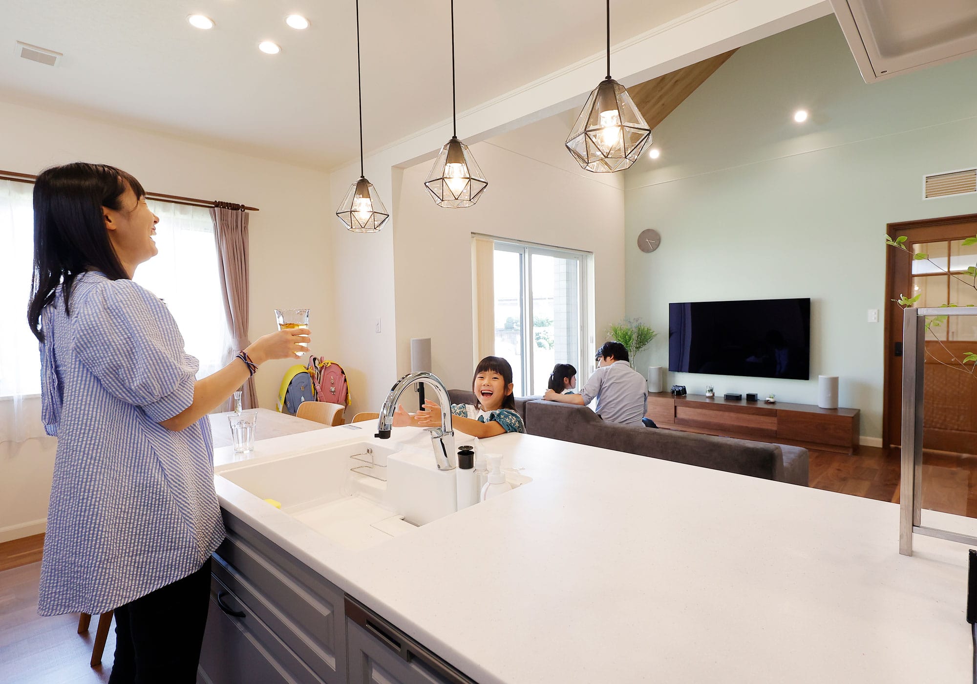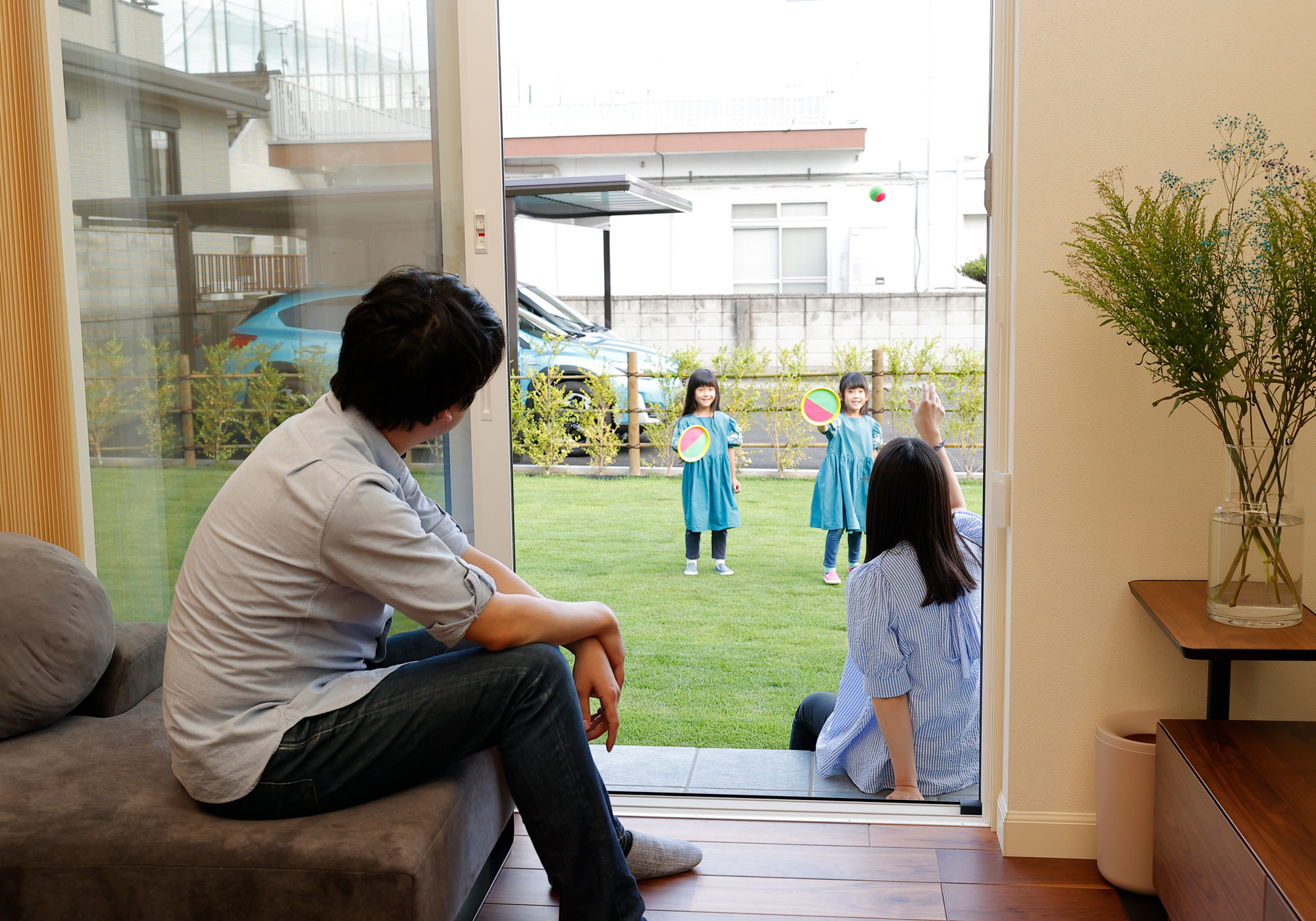 在宅ワークで週の2~3日は家にいるのですが、今の家ができてからは仕事が終わった後はリビングで家族と一緒に過ごすことが多いですね。子供も含めて個人の部屋はありますが、開けたリビングの空間が心地よく、家族と過ごす時間が以前より増えました。子供が大きくなっても子供が部屋にこもらないようにこの空間を大切にしていきたいです。