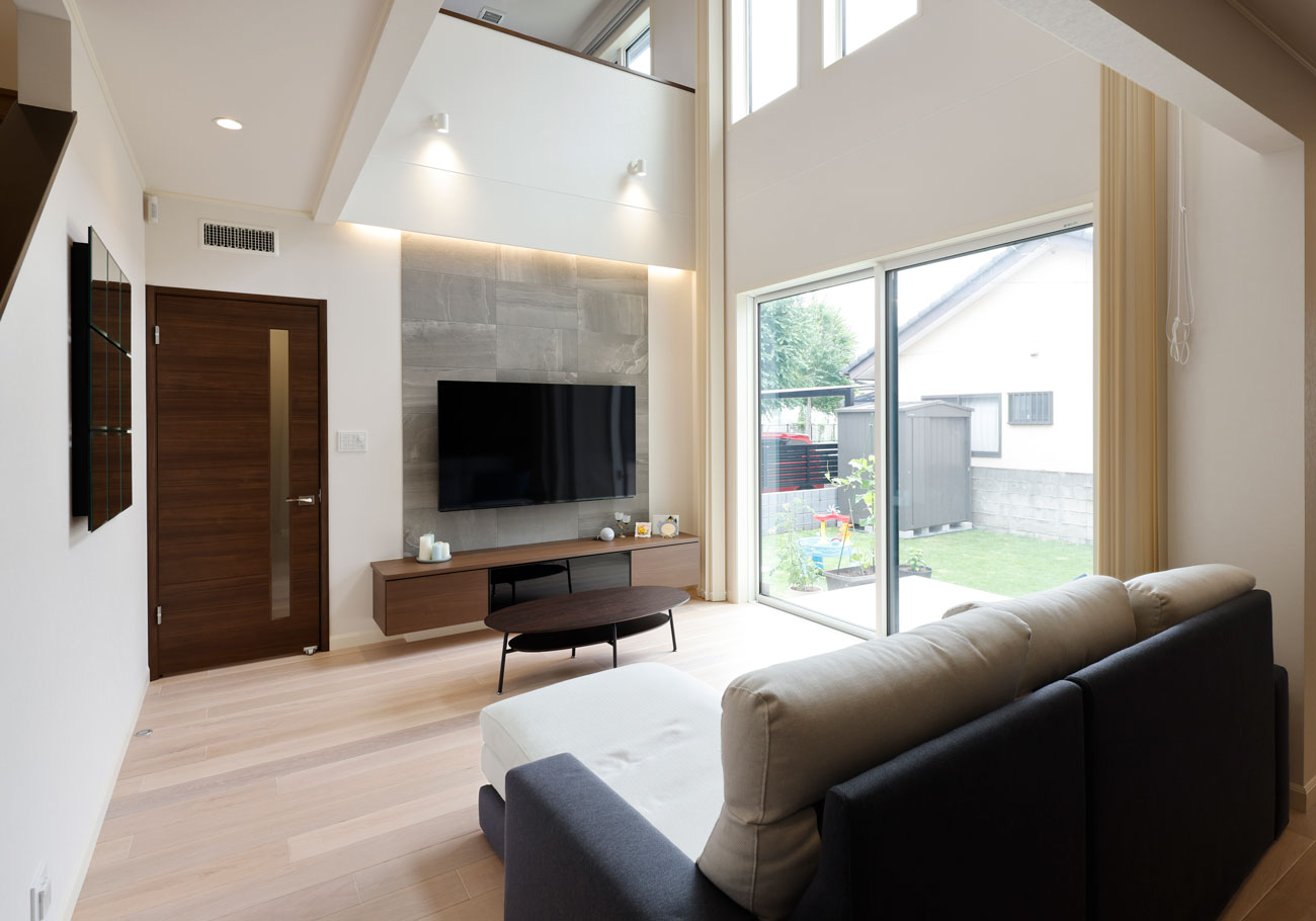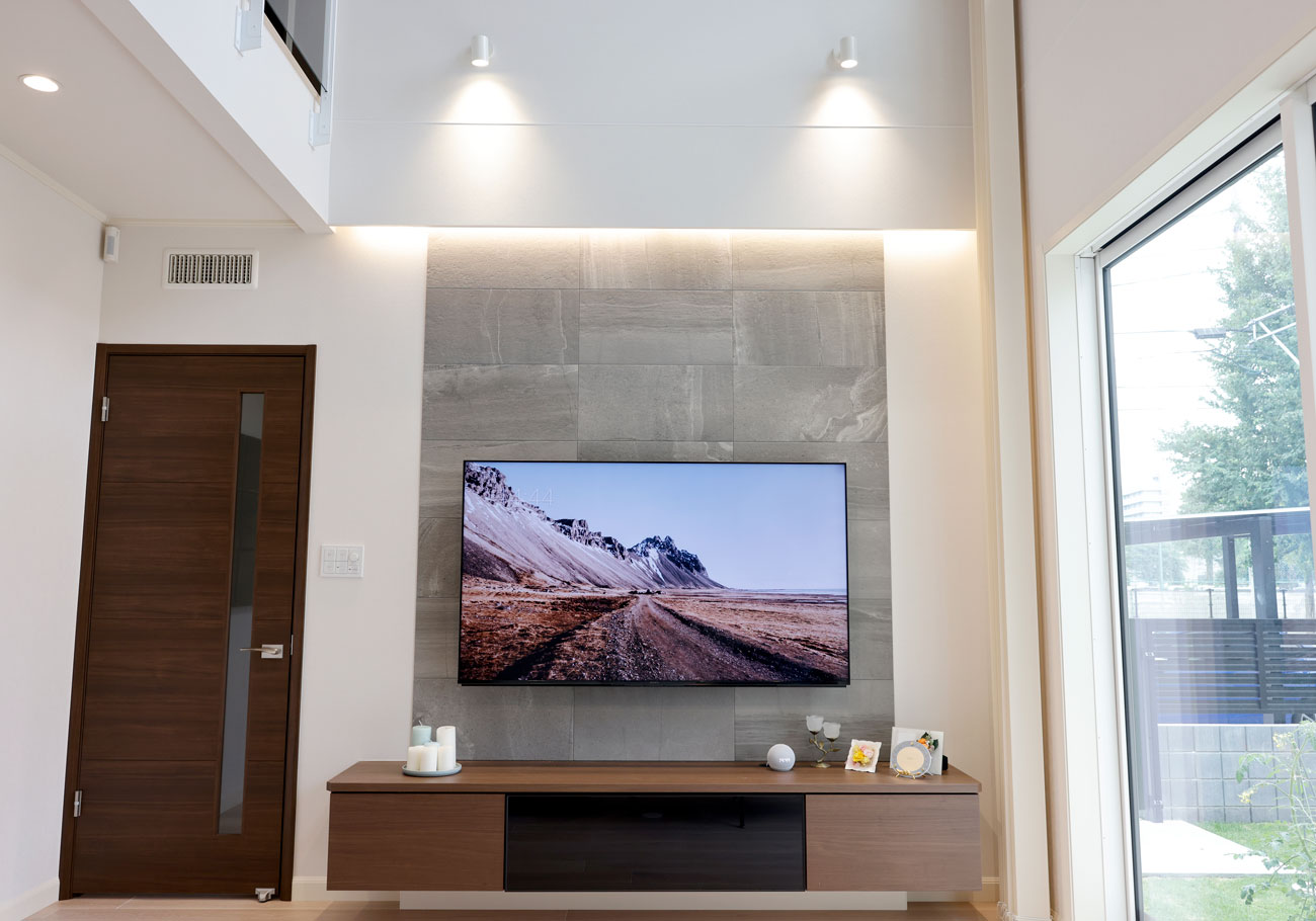 この吹き抜けと壁面デザイン(エコカラット)がお気に入りで細かい部分まで要望を叶えてもらいました。壁面デザインの組み合わせは現場で直接見ながら納得いくまで親身ご提案いただけてとても助かりました。