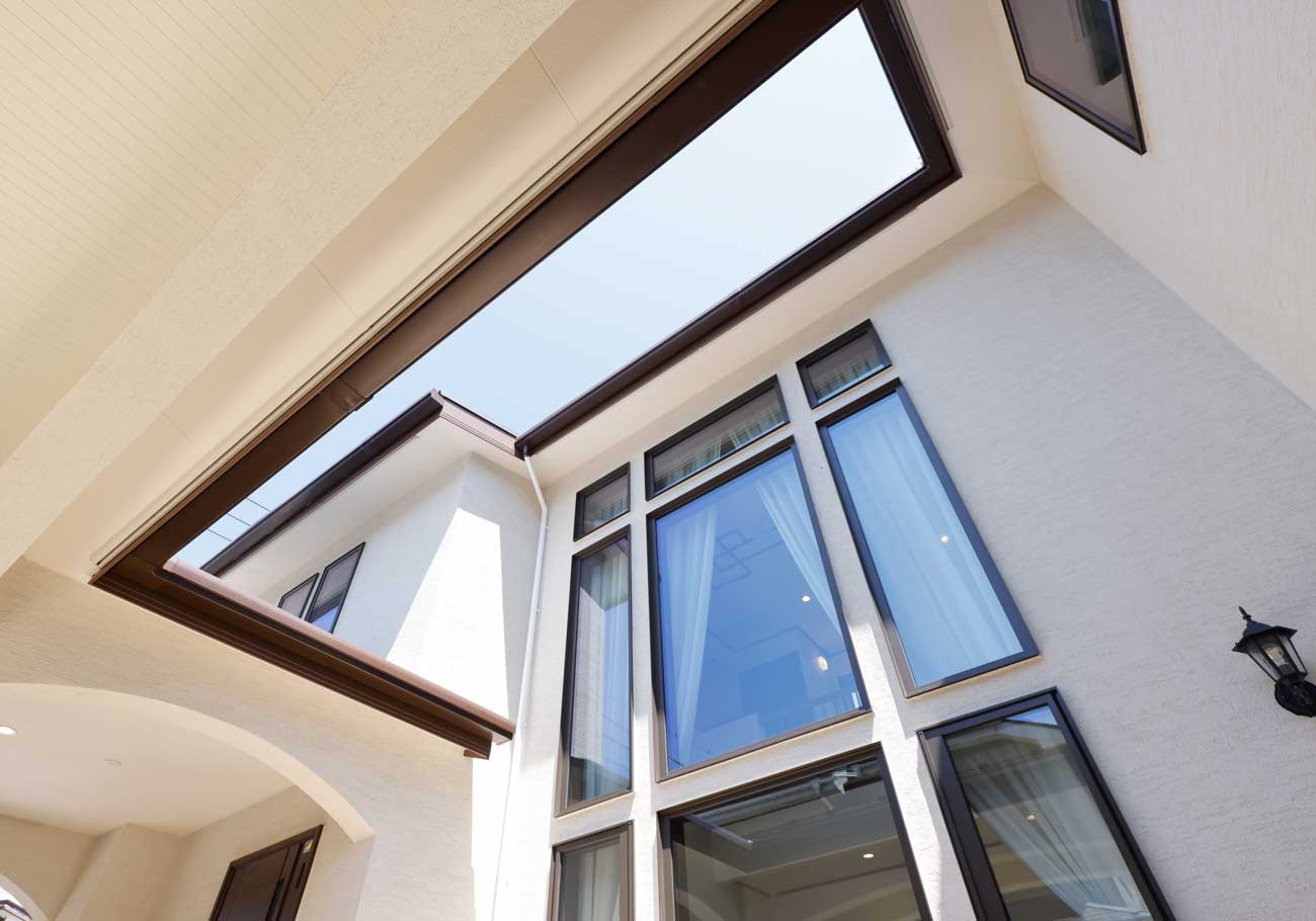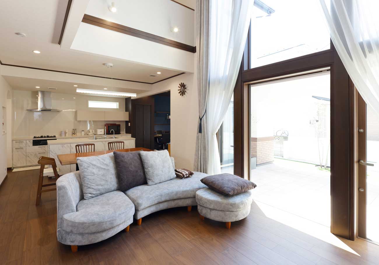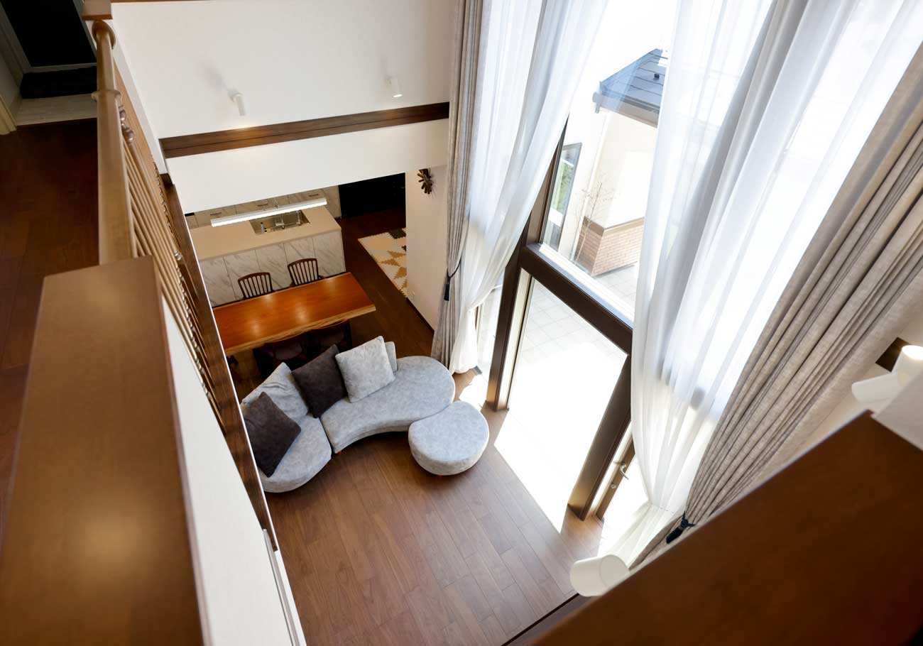 こだわりの大きな窓と吹き抜け