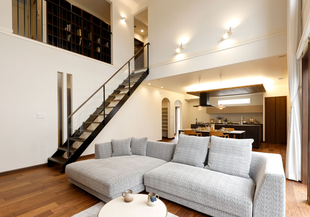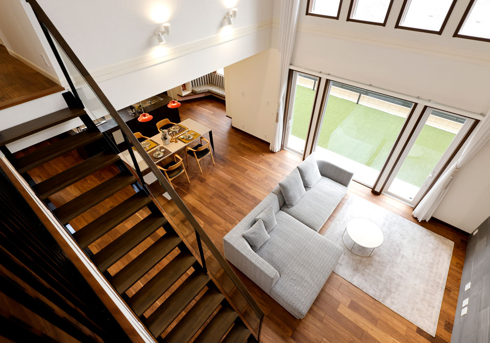 想像を超えるダイナミックな吹き抜けをつくっていただきとても感謝しています。玄関からリビングに抜けると、ものすごい開放感のある空間になっていて驚きました(笑)。
