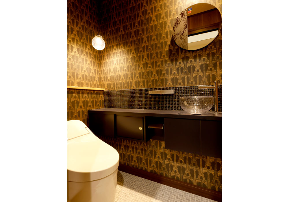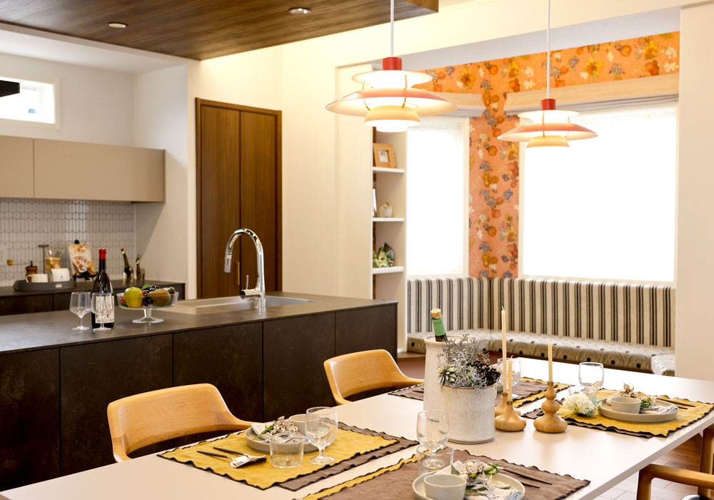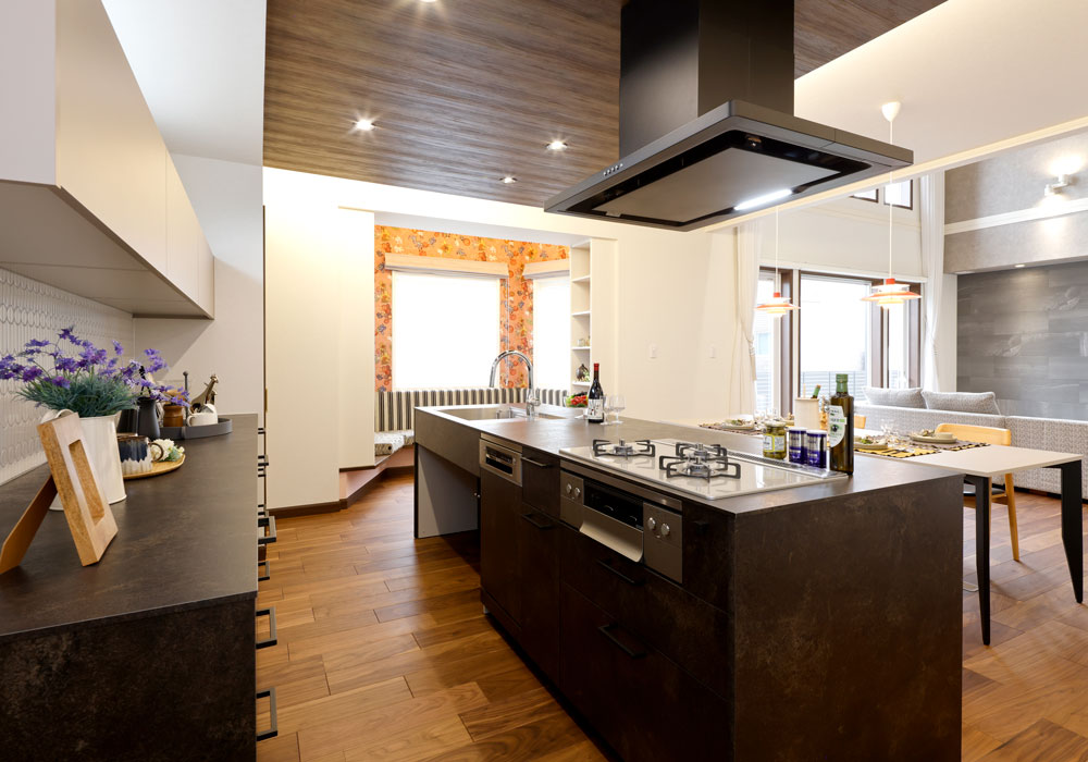 外観は「白」を選びましたが、内装まですべて白にしてしまうと落ち着かなくなりそうかも?と考えて、内装やキッチンは敢えてダークカラーを取り入れたホテルライクなモダンテイストにしました。インテリアコーディネーターさんにサポートいただきながら、自分の好みと全体のバランスを調整しつつ、壁紙やライト、タイルなどを選ばせていただき、理想どおりの空間にすることができたと思っています。特に壁紙にはこだわったので身内や友人に早く見てもらいたいですね。