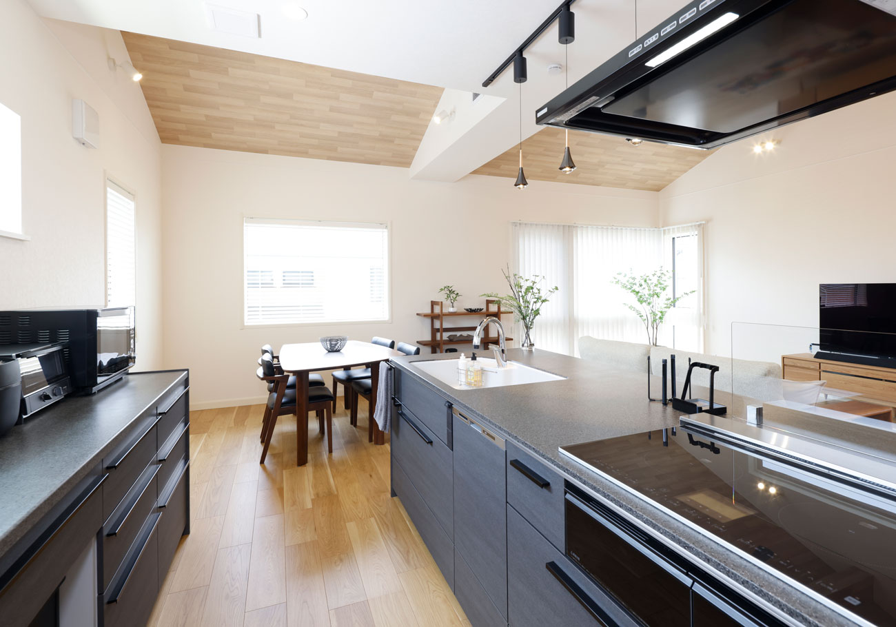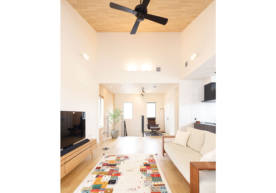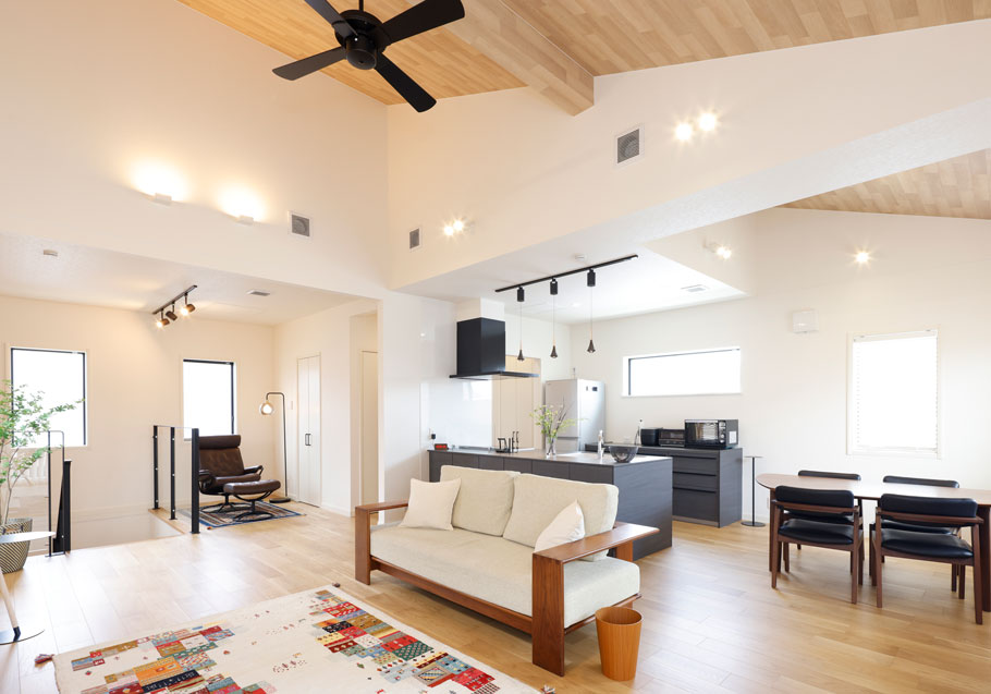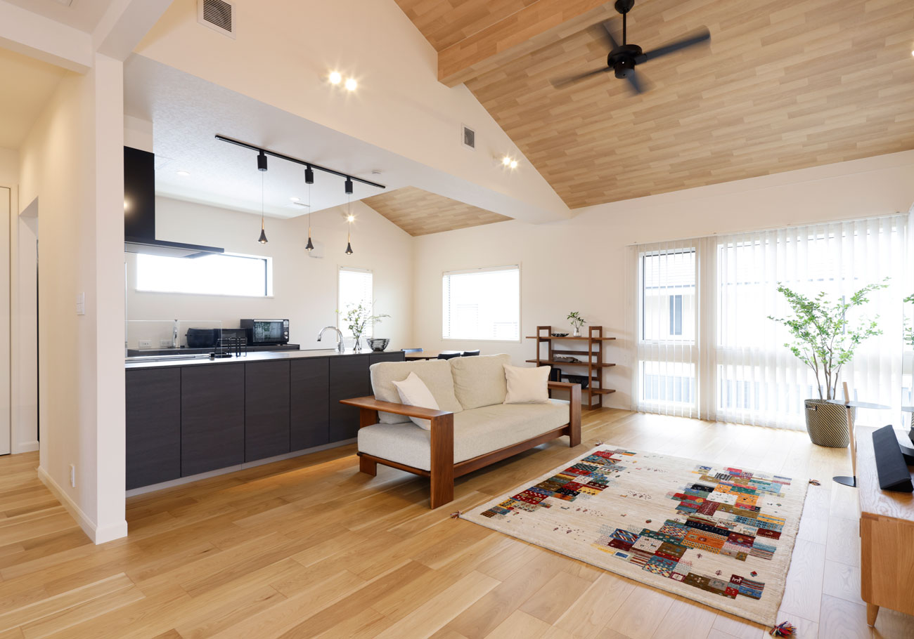 こだわったのは、ラナイの開放感を窓で表現することでした。角を活かした窓の配置でラナイのような抜け感を実現。採光も抜群で、明るく広々とした空間になりました。窓の形状や配置を工夫することで、視線が外へと抜け、実際のラナイがなくても十分満足できる、開放的で心地よいすまい空間になりました。