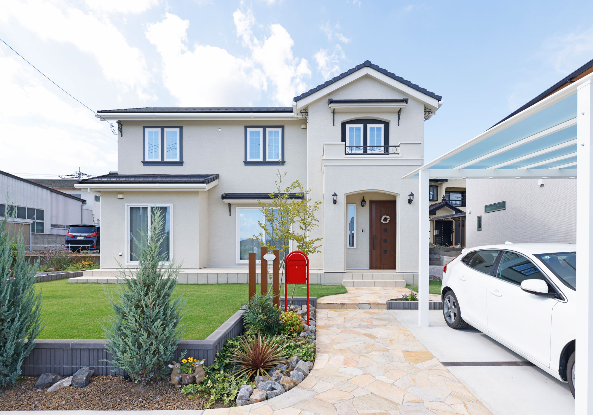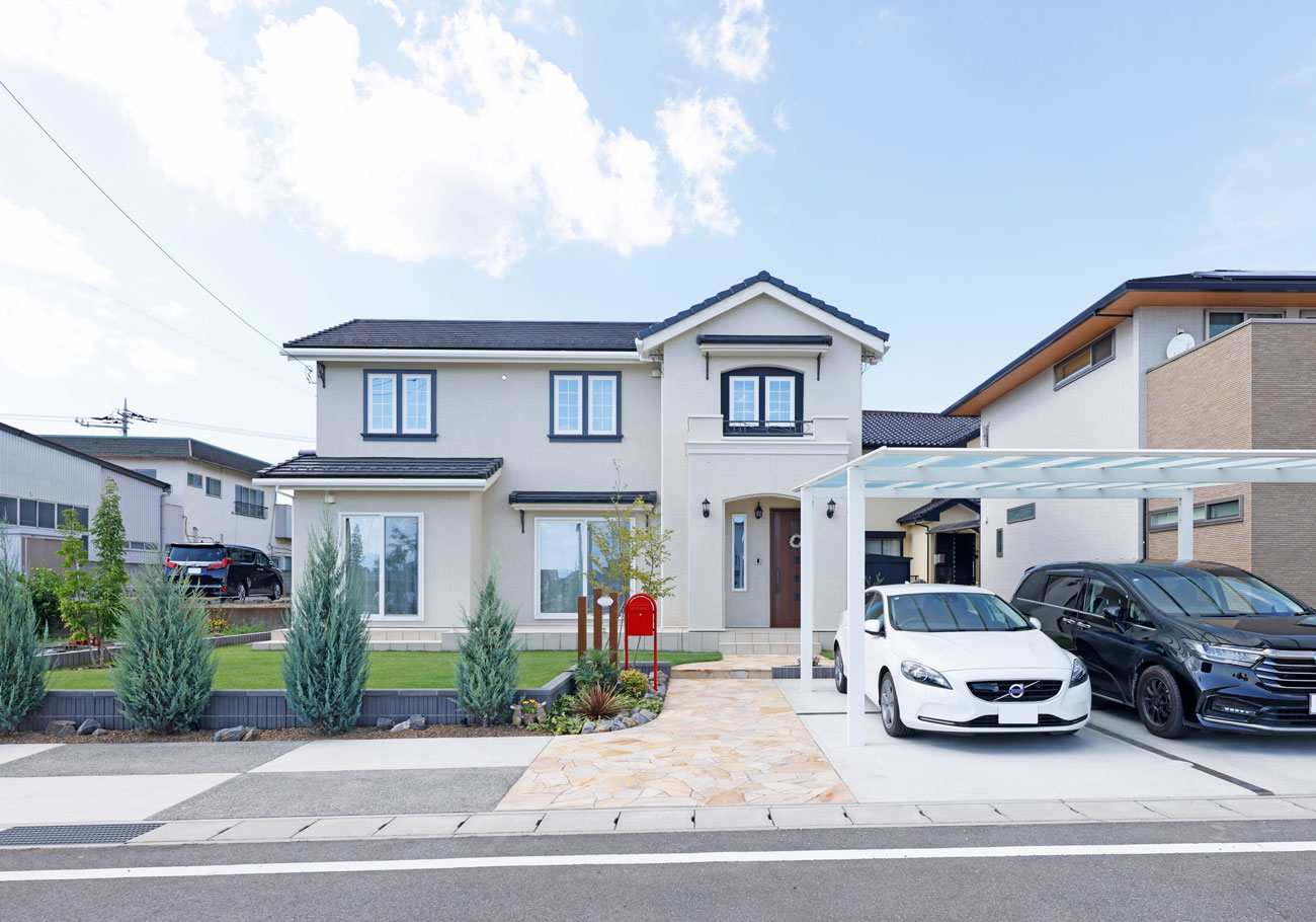 外観や内装に取り入れたアールのデザインは、優しさと温もりを感じさせ、玄関や扉、飾り棚にまでその意匠を施しました。外観の各所にアイアンの妻飾りを配置し、窓枠もデザインにこだわり、遊び心のある空間が広がっています。また、間取りは将来を見据えて、一階だけで生活が完結できるように設計してもらいました。三井ホームにして良かったと感じるのは、その品質の高さです。お風呂やトイレなど、どれも基本の設備がしっかりしていて、安心して使えるという満足感があります。営業の竹内さんやインテリアコーディネーターの滝川さんも、私たちの希望をしっかりと汲み取り、落ち着いた空間を作り上げてくれました。