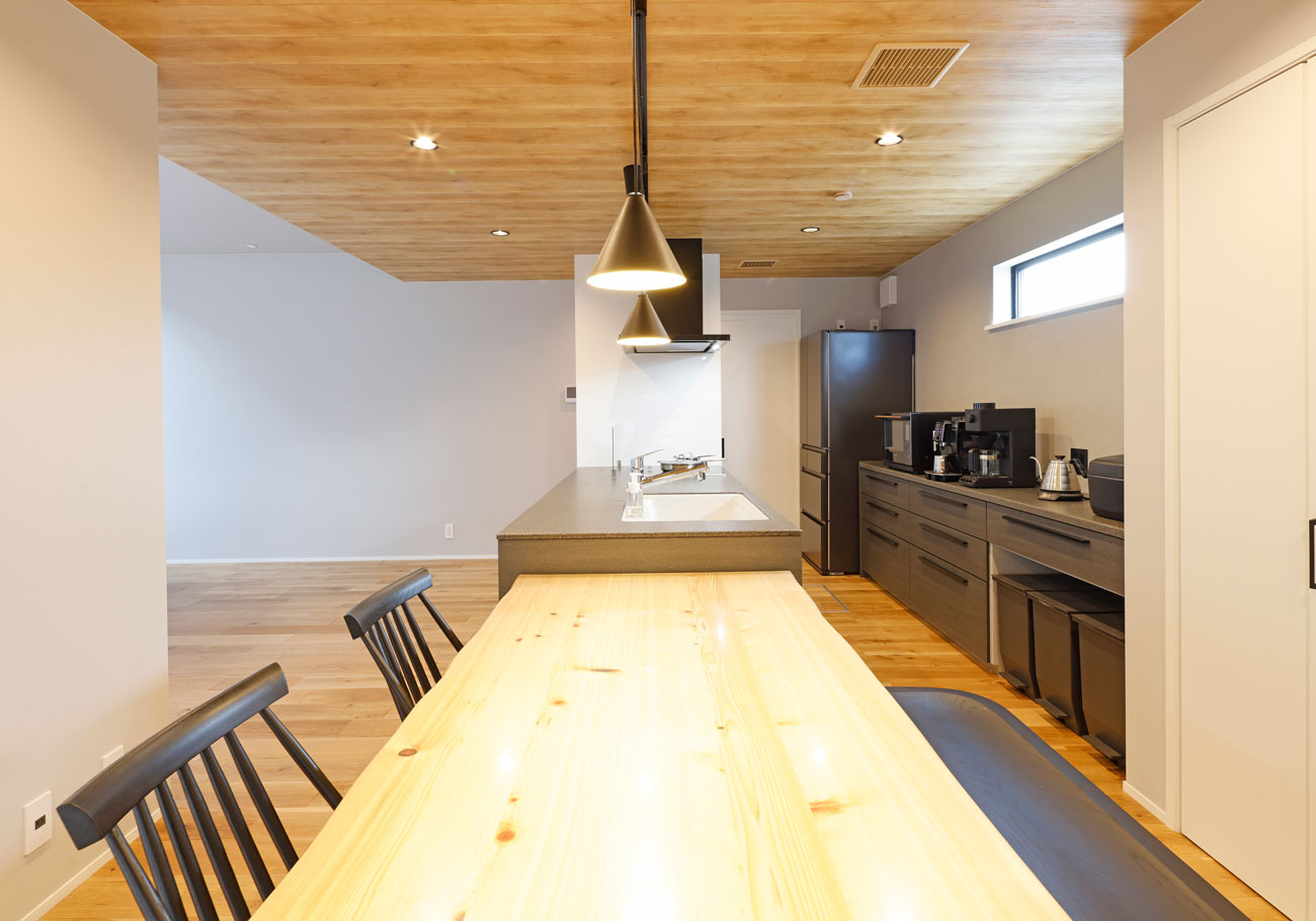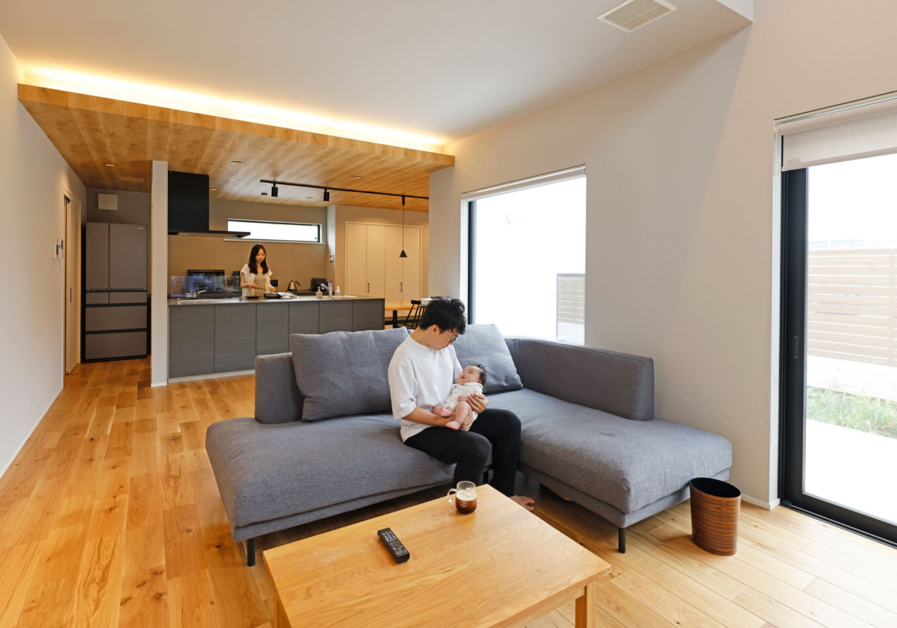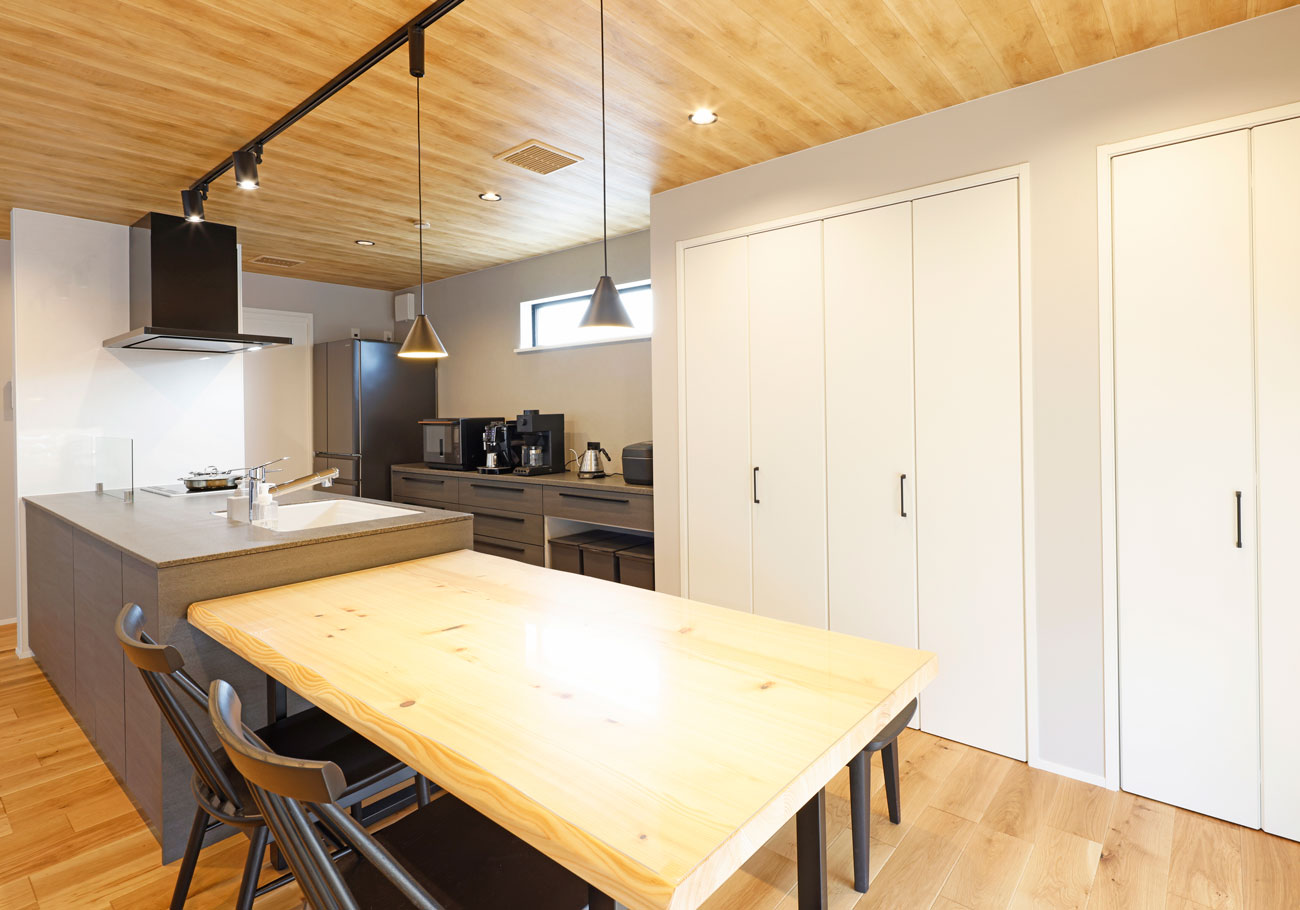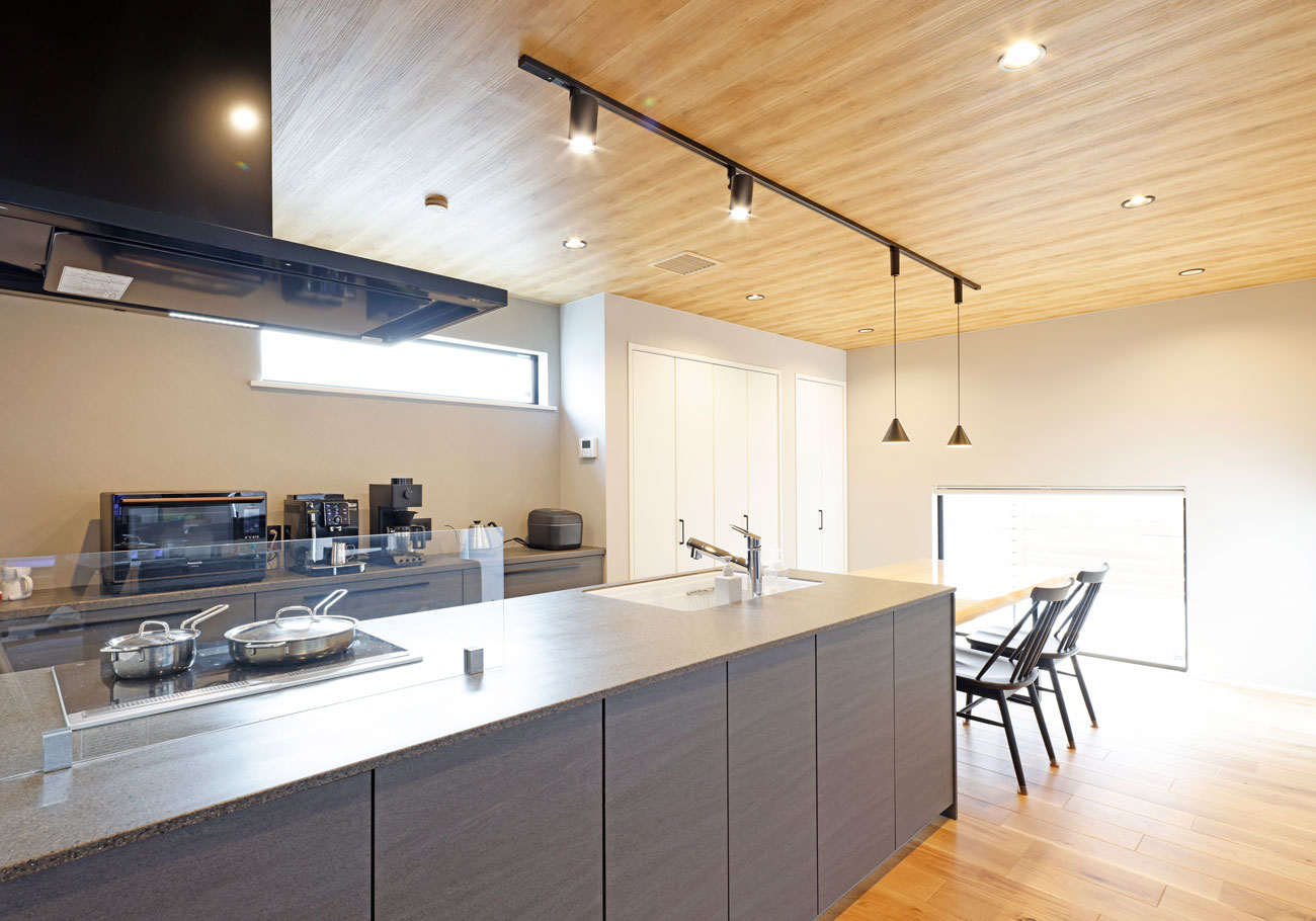 外観のデザインにおいて、特にこだわったのは木の素材感と黒いドアです。街なかモデルで見た木の使い方が気に入り、それをベースに家を作りたいと思いました。営業の岩崎さんや設計の中井さんから提案していただきドアを真っ黒にしたことで、外観にスタイリッシュでモダンな印象を与えることができました。この黒いドアは、木面とバランスをとりながらも、全体を引き締めるアクセントになっています。また、インテリアについては、妻がトクラスの暗めのカラーのキッチンを選びました。人造大理石は傷つきにくく、掃除も楽で、使い勝手が非常に良いです。こうした選択は、私たちのライフスタイルにぴったりで、住むたびに満足感が増しています。