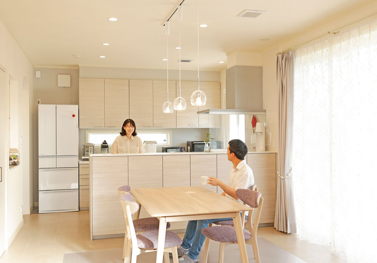 群馬の暑さと寒さに耐えきれなくて、全館空調は絶対に入れようと思っていました。前に住んでいた賃貸は断熱が弱くて、冬は寒いし夏は暑いしで…。新居は全館空調のおかげで、家中どこにいても快適。リビングも寝室も、同じ温度で本当に過ごしやすいです。それに、太陽光パネルもつけたから、電気代も思ったより安く抑えられて助かっています。洗濯物も家の中で乾かしているんですが、湿度が一定に保たれているからいつも同じ時間で乾くんです。もう家に帰ってきた瞬間、涼しいか暖かいか、どっちかで最高の快適さなんですよね。外がどれだけ暑いか寒いか、家にいると全然わからなくなりました(笑)。