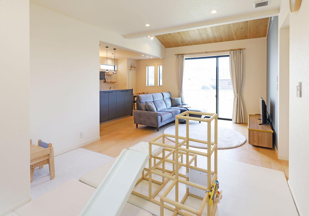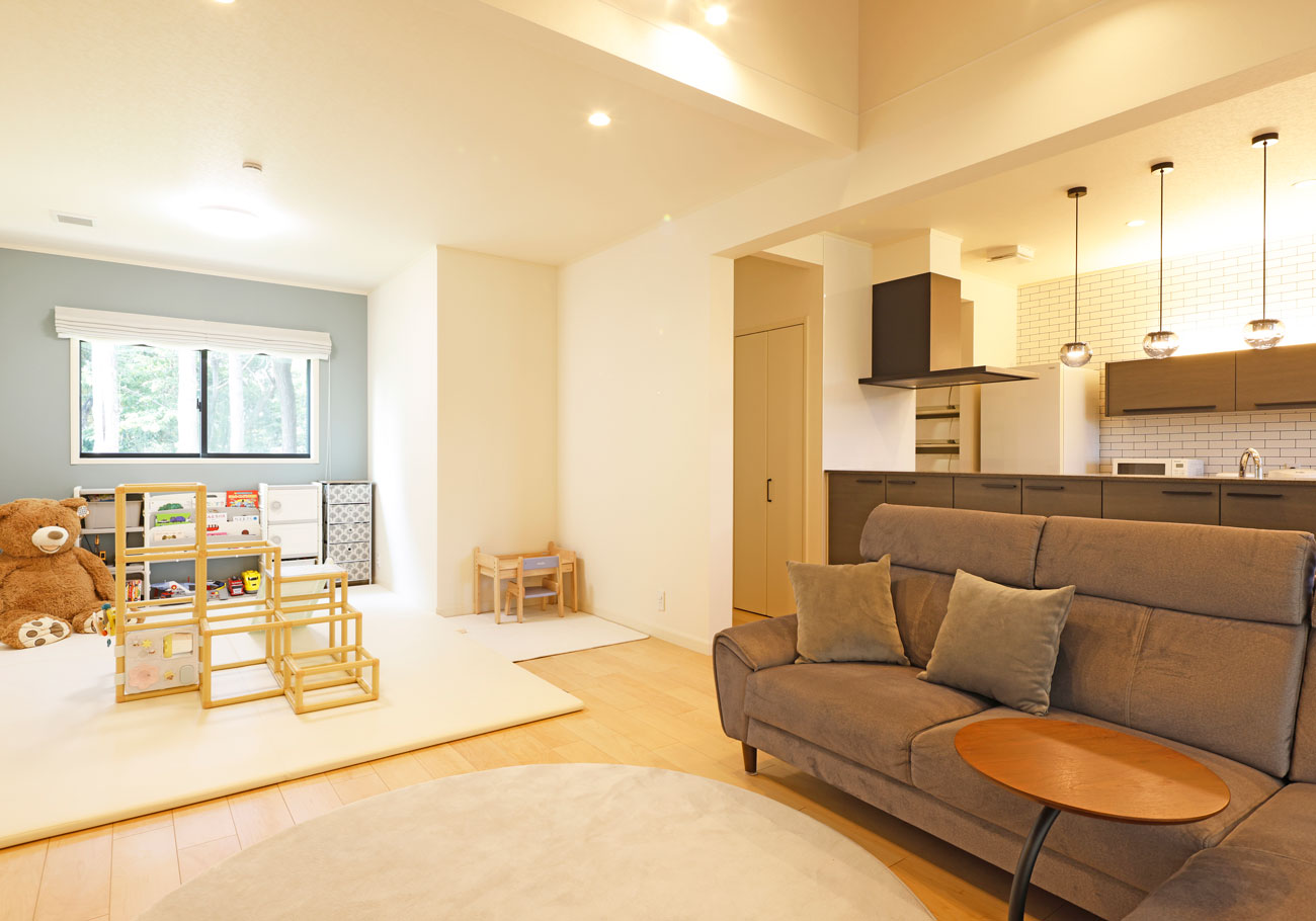 三井ホームを選んだ大きな理由の一つは、全館空調の快適さです。夏の暑い日でも家の中はどこにいても涼しく、冬も全室暖かい。特に真夏は、外に出たくないほど居心地が良いです。またリビングは特に広く設計してもらい、家族みんながリラックスして過ごせる空間にこだわりました。リビングからキッズコーナーや外庭が見えるようにし、家事をしながら子どもの様子をしっかり見守れるように工夫しました。窓からの景色もリラックスできる要素の一つで、日々の暮らしに癒しを与えてくれます。この住環境のおかげで、家族全員が快適に過ごせています。