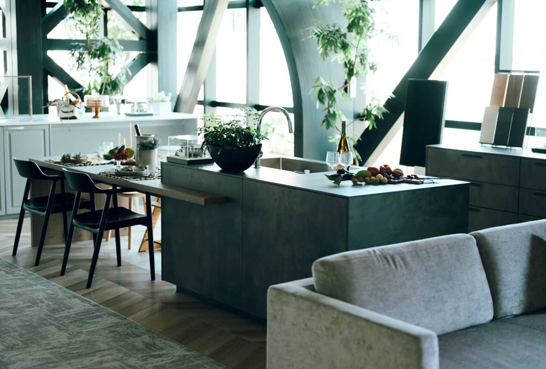 三井ホームのショールームでは、最新のキッチン、テーブル、