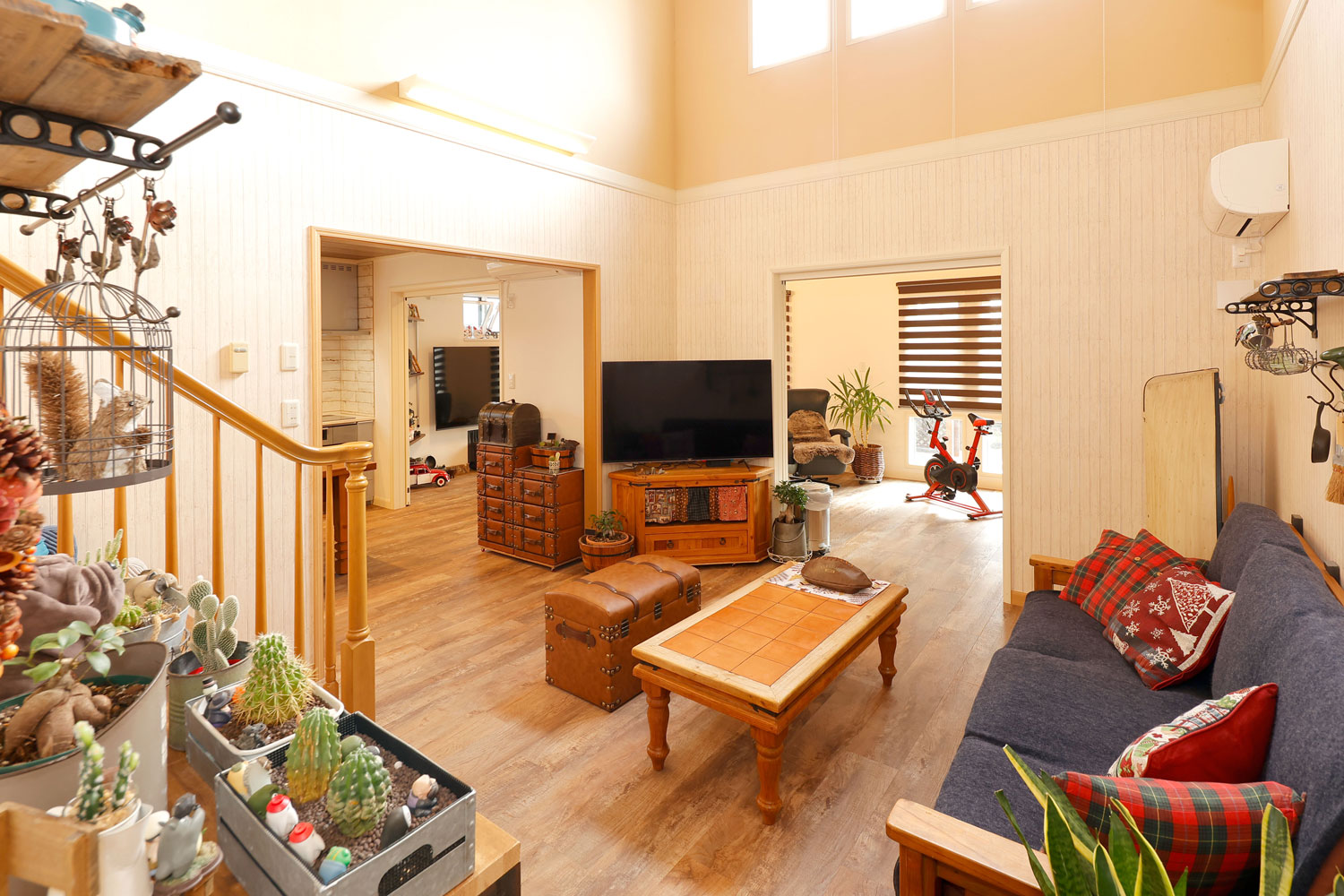 ご夫婦共にそれぞれの好みが明確でした。増築部分のリビングは主にご主人が、改装部分にあたるDKは主に奥様と、それぞれのご希望を伺いつつ、既存LDKにあった奥様のご趣味のインテリア雑貨を参考に、間取りや配置は早々に決まっていきました。
