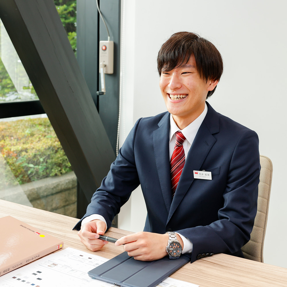 2022年入社の荒井拓海と申します。学生のころから建築を見るのが好きでした。どういう住宅が建つのだろうとワクワクしたのを覚えています。新しい生活が始まる家づくり、そこにあるワクワクをお客様と一緒に感じたいと思い群馬ホームに入社いたしました。お客様に感動を届けられる人になれるよう頑張っていきます。