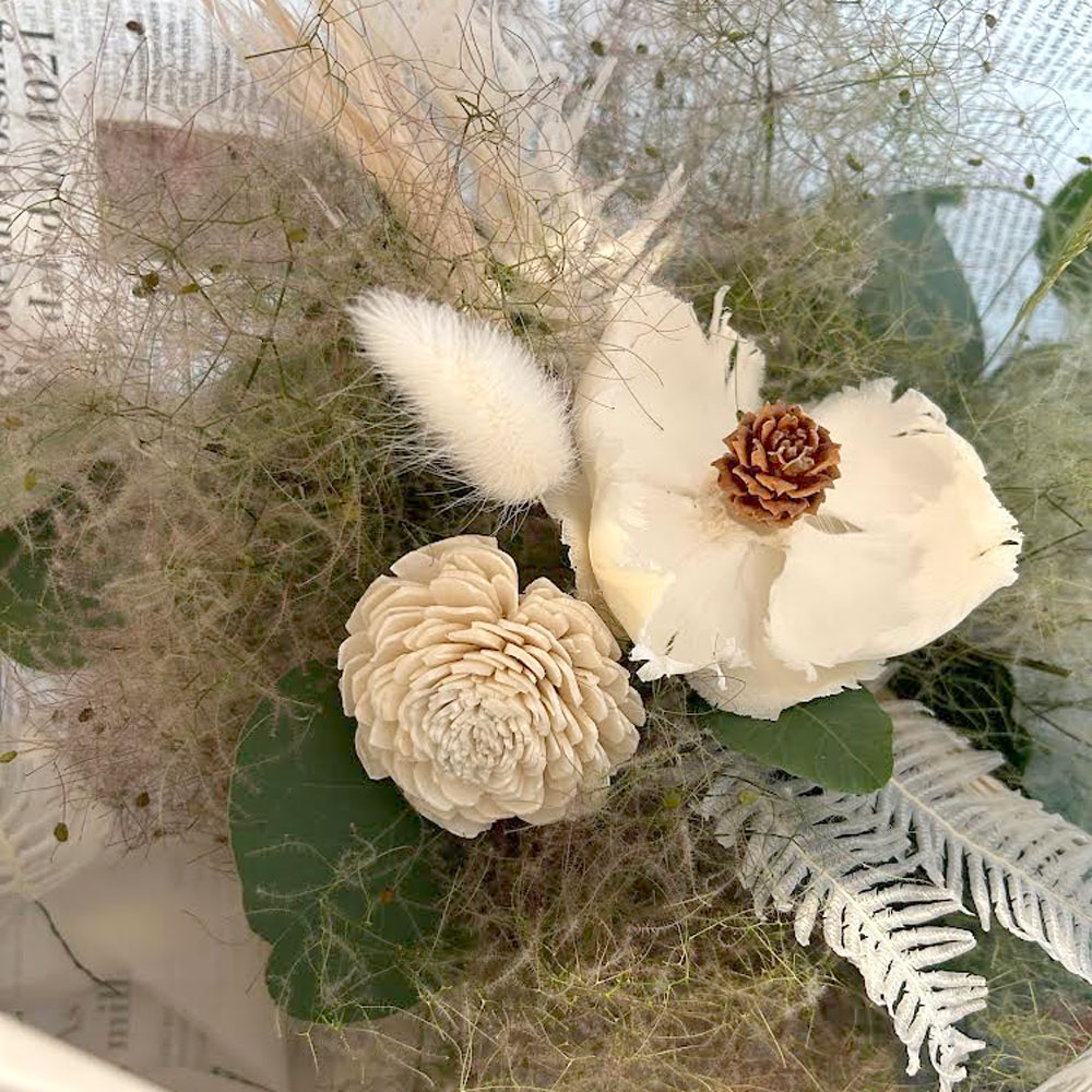 休日は愛犬と一緒にカフェやドッグランなどによくお出掛けをします。また写真はお花屋さんでのワークショップに参加をし、スワッグを作成した時のものです!お花が好きなので自分の部屋、リビングなど家に季節の花を飾り毎日癒されています。