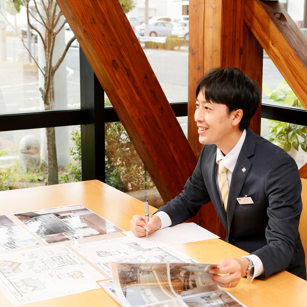 2009年入社の竹内翔と申します。私自身三井ホームで自宅を建て、生活の中で建物の良さを毎日感じております。家づくりをした経験を活かし、今後の営業活動にも役立てたいと思います。家を建て増えた趣味もございます。ガーデニングアドバイザーの資格をとり、季節の植物の植え替えなどを、時間を見つけてはやっています。
