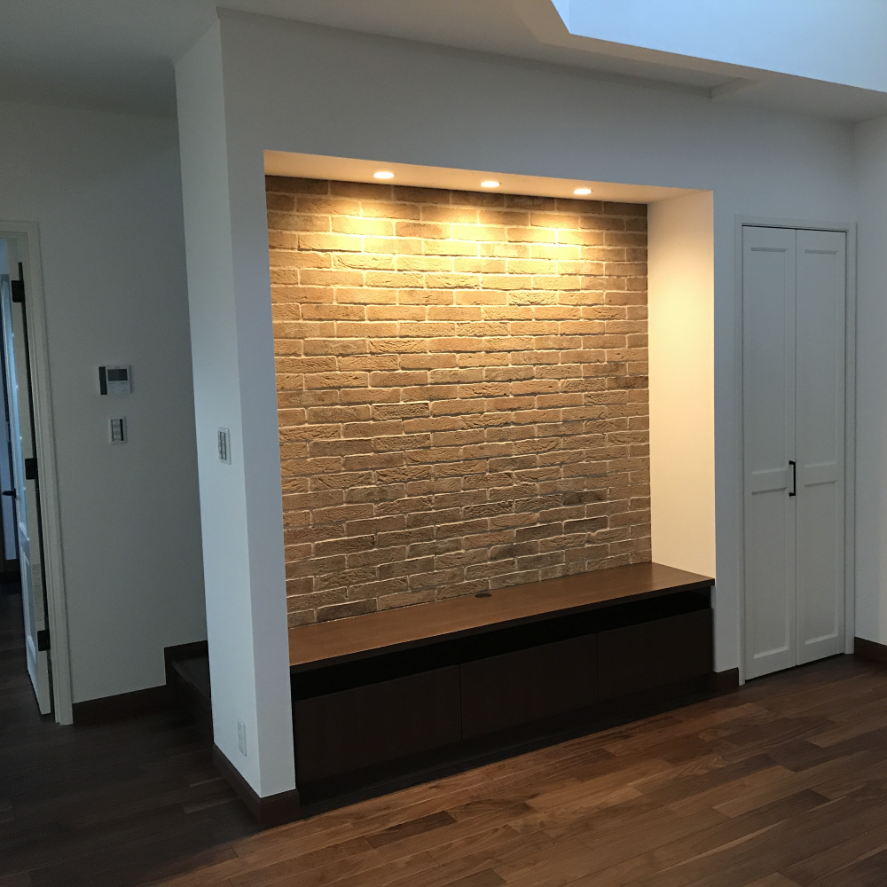 自宅を建てる時のこだわりは、リビングに吹抜け、TVを置く壁をタイル、収納の中の壁紙を変更などです。外観のデザインや間取りも家族の意見を取り入れ建築しました。空調は全館空調を採用し、快適な生活を送っています。