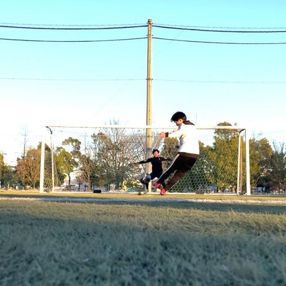 休日はサッカーをしたり、海外サッカーを観たりしています。写真は中学時代からの友人とPK練習をしているところです。これからはサッカー以外にもキャンプやゴルフといった趣味に挑戦していきたいです。